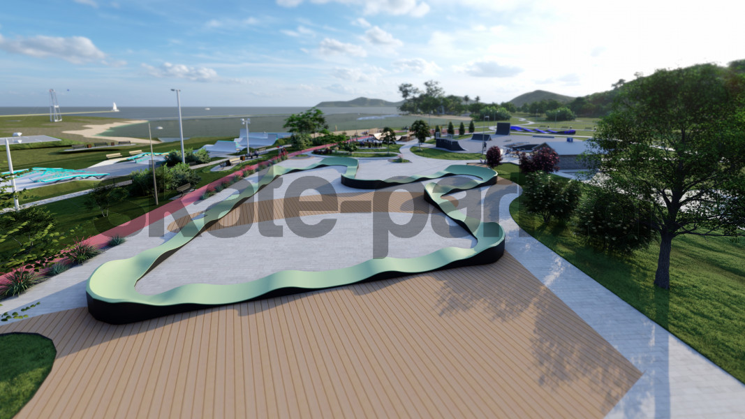 PUMPTRACK MESA PF16E to tor rowerowy o długości nawierzchni jezdnej 103 m, idealny do treningów i rekreacji. Zajmuje powierzchnię 32.86 m x 31.00 m i jest dostępny jest w trzech kolorach, umożliwiając dopasowanie do różnych preferencji estetycznych i otoczenia.