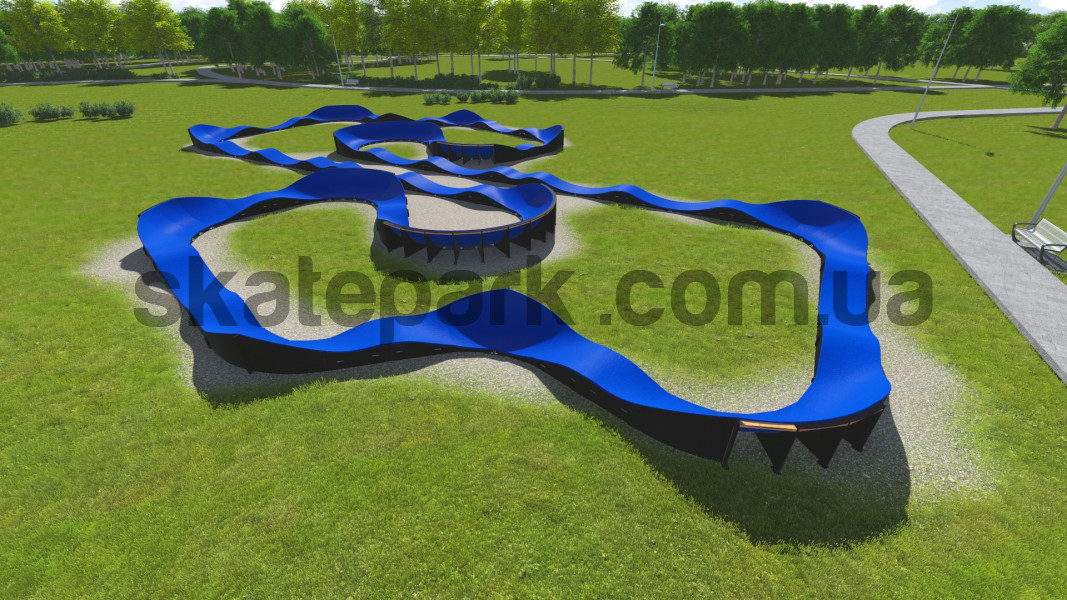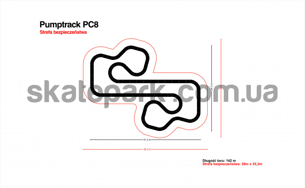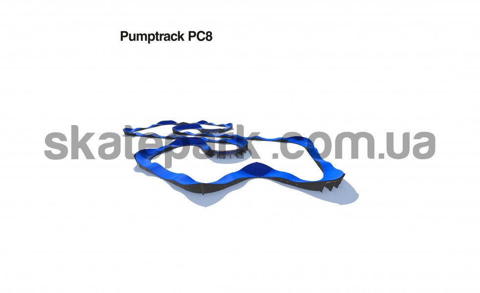 Композитний памп-трек PC8 – це комбінація 28 купин для розгону і 14 смуг з різними кутами повороту. Завдяки його різнорідності кожен користувач, особливо початківець, зможе ознайомитися зі специфікою їзди на об'єктах цього типу, що дасть їм підстави для участі в змаганнях навіть на найскладніших трасах цього типу.