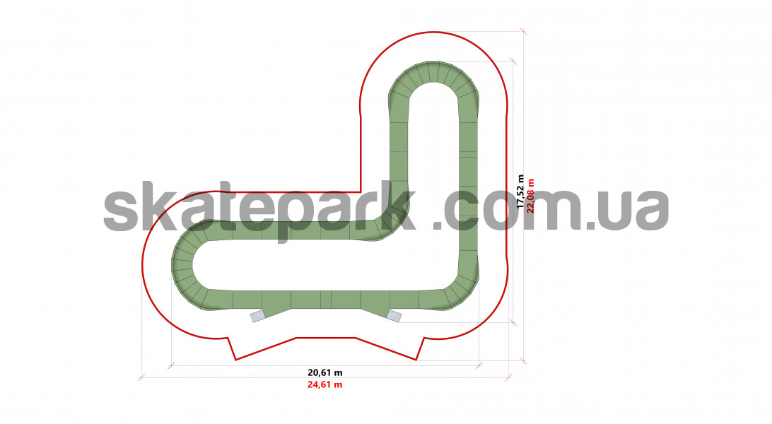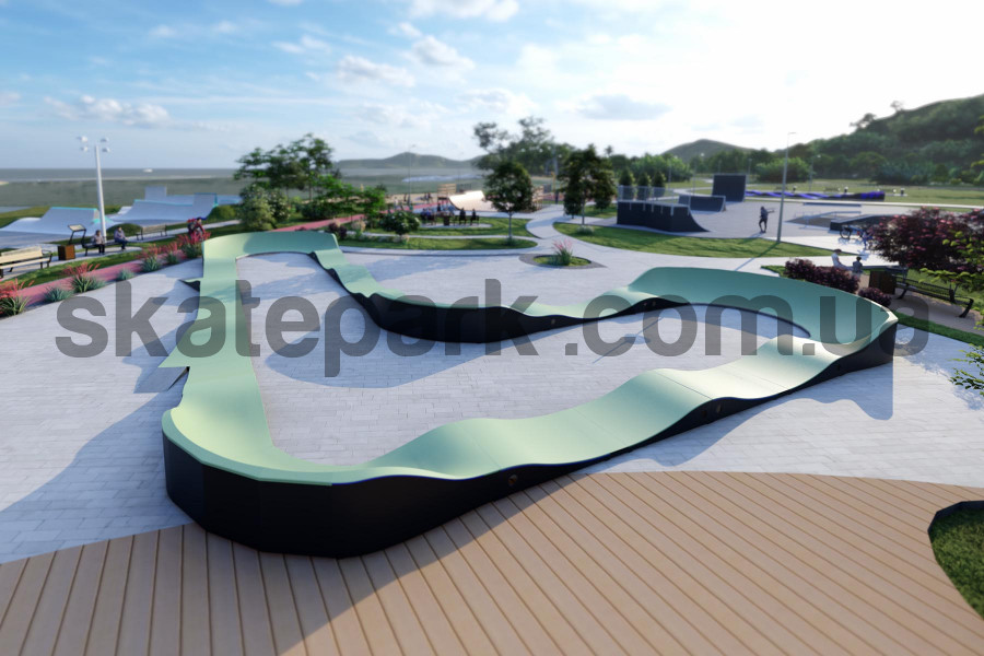 Pumptrack GLACIER PF6E - це вдосконалена доріжка з біговою поверхнею довжиною 64,9 м, призначена для любителів велоспорту всіх рівнів. Вона займає площу 17,52 м х 20,61 м, пропонуючи простору та різноманітну трасу для катання. Завдяки надійному виготовленню та продуманому дизайну, Pumptrack GLACIER PF6E ідеально підходить для парків, рекреаційних зон та інших громадських місць, забезпечуючи інтенсивний досвід та активний відпочинок.