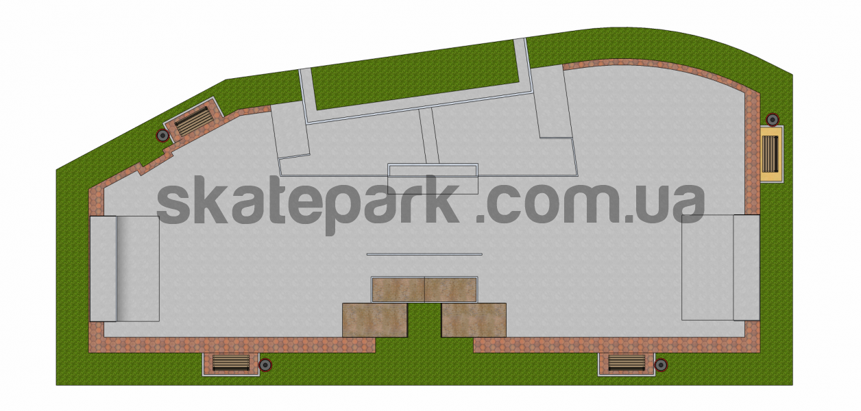 Przykładowy projekt betonowej plazy mieszczącej się na stosunkowo nie dużym placu. przeszkody idealnie będą się nadawały dla deskarzy.