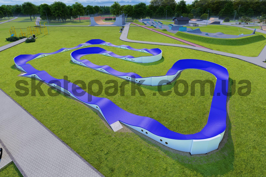 PUMPTRACK SILVERSTONE E PC7BEPE - це сучасна спортивна доріжка, виготовлена за поліетиленовою технологією, яка ідеально підходить для любителів велосипедів, скутерів та роликів. З вражаючою довжиною бігової поверхні 110 метрів, розміром 21,7 м х 30,2 м і вагою 4223 кг, ця бігова доріжка має міцну конструкцію і привабливий дизайн. У комплект входить задня оббивка та модулі в'їзду/виїзду, що робить його повним і готовим до інтенсивного використання. Крім того, зона безпеки 30,2 м х 21,7 м забезпечує безпечне середовище для користувачів.