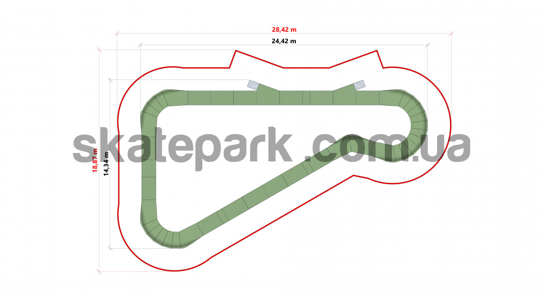 Памптрек RIVER PF7E - це подовжений трек з біговою поверхнею довжиною 66,8 м, призначений для велосипедистів, які шукають виклику та задоволення. Він займає площу 20,67 м х 20,27 м, пропонуючи широку та різноманітну трасу, що ідеально підходить для користувачів усіх рівнів. Завдяки своєму дизайну Pumptrack RIVER PF7E ідеально підходить для парків, рекреаційних зон та інших громадських місць, гарантуючи інтенсивний досвід та активний відпочинок для всіх любителів велоспорту.