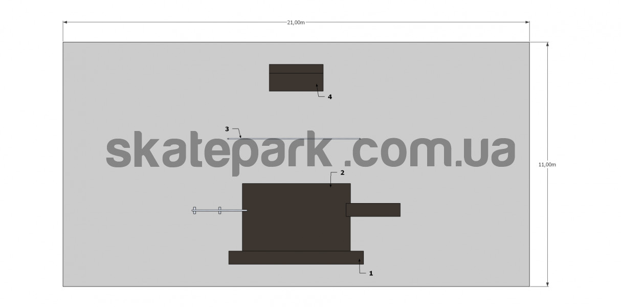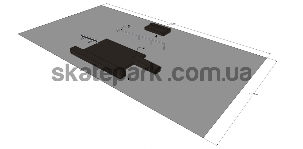 Projekt skateparku rozmieszczonego na stosunkowo małym placu. Rozplanowano na nim kilka przeszkód które będą służyć jako obiekty treningowo - szkoleniowe.
