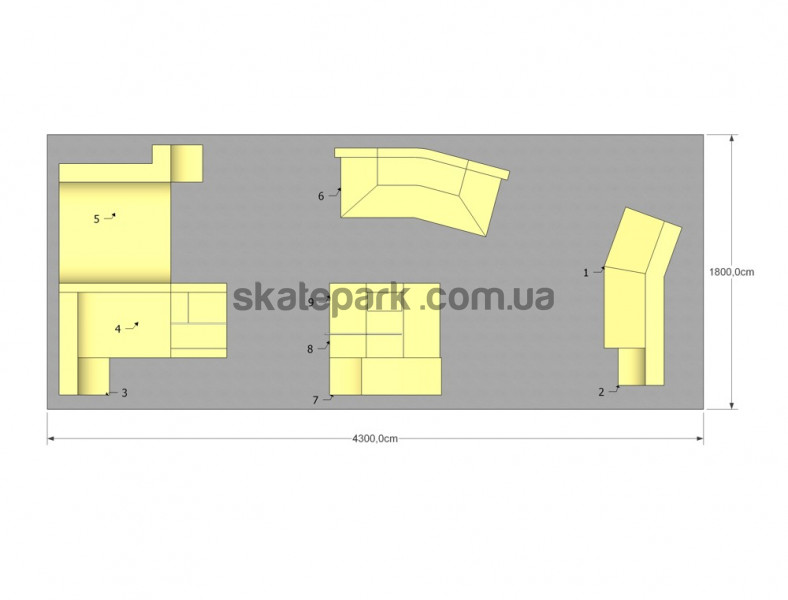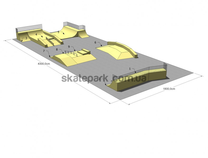 Bank Ramp 15st, Quarter Pipe, Quarter Pipe, Platforma z murkami, london gap’em i poręczą, Mini Rampa z quarterem, Piramida z murkiem, Funbox do skoków, Funbox z poręcza, Funbox z murkami