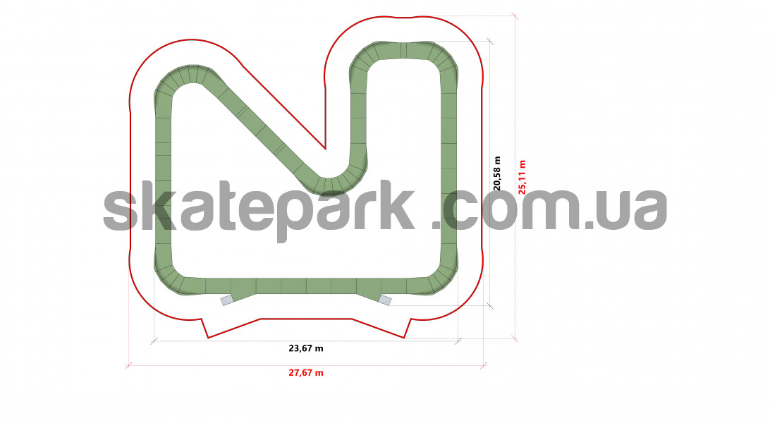 SUMMIT Pumptrack PF10E - це вдосконалений трек з біговою поверхнею довжиною 94 м, що ідеально підходить для велосипедистів, які шукають виклику та різноманітності у своїй їзді. Трек займає площу 23,67 м х 20,58 м, пропонуючи широку та різноманітну трасу, яка підійде як початківцям, так і досвідченим користувачам. Завдяки міцній конструкції та продуманому дизайну, SUMMIT Pumptrack PF10E ідеально підходить для парків, рекреаційних зон та інших громадських просторів, забезпечуючи інтенсивний досвід та активний відпочинок для всіх ентузіастів велоспорту.